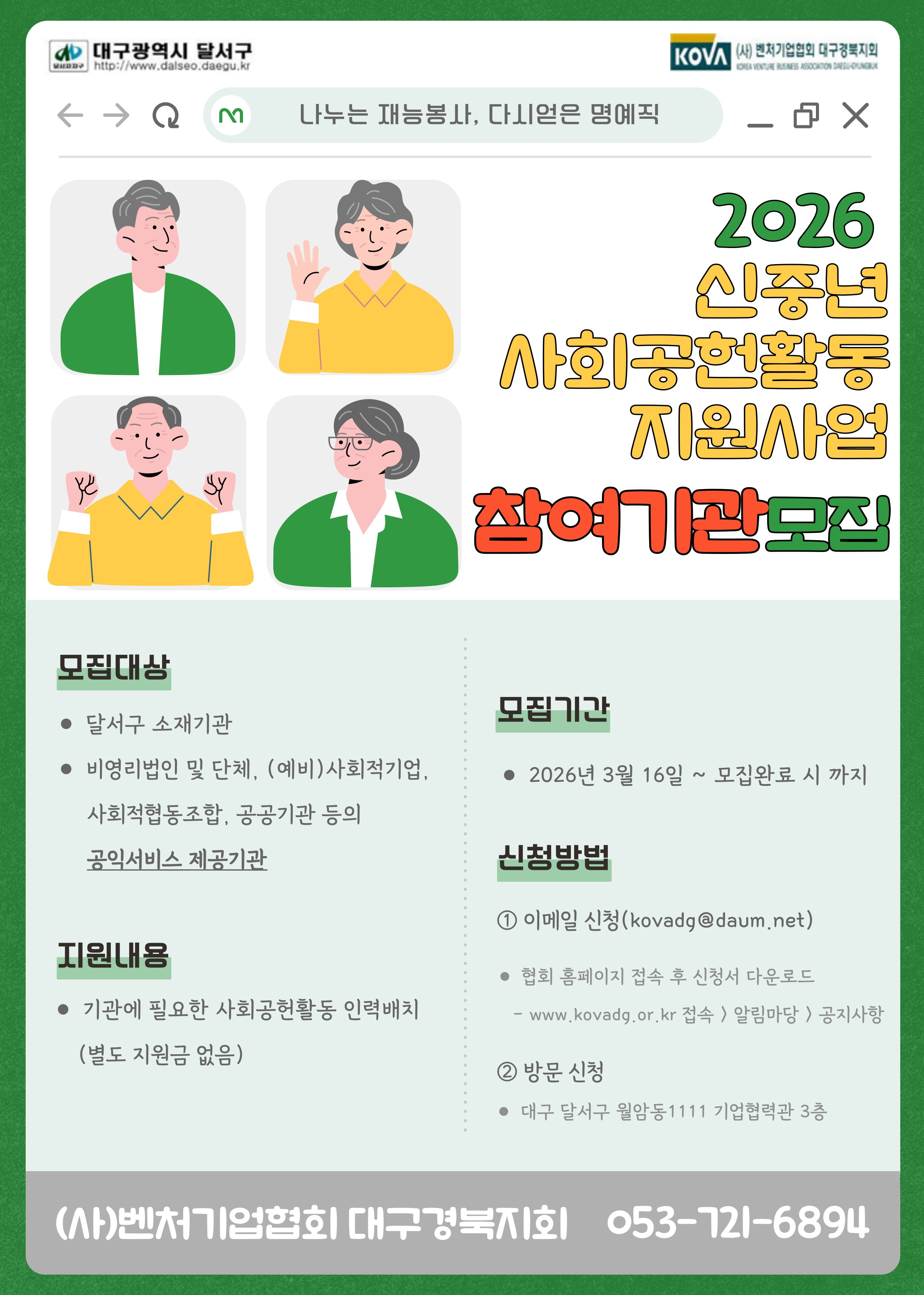 26년 신중년 사회공헌활동 지원사업 참여기관 모집 안내